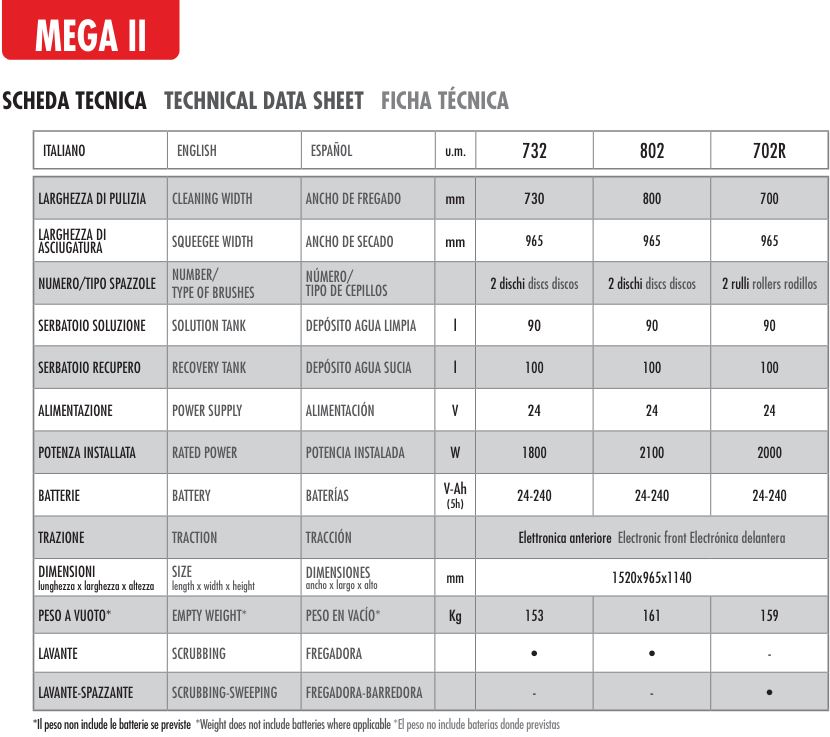 Le lavapavimenti di RCM mod. MEGA II vengono proposte in tre diverse versioni: