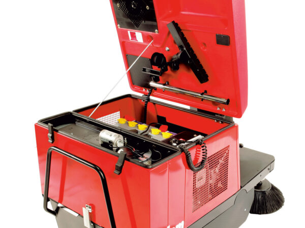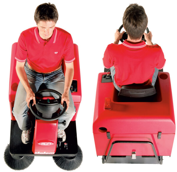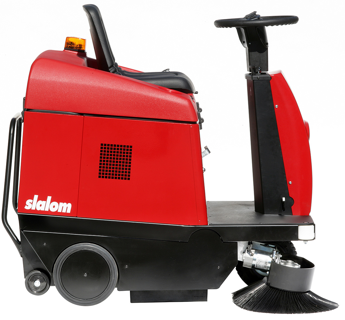 SLALOM di RCM è la piccola spazzatrice progettata per un utilizzo in ambienti interni ed esterni, adatta a molteplici tipi di superfici. La robustezza strutturale e le caratteristiche tecniche di nuova generazione pongono questa spazzatrice con operatore a bordo al vertice della categoria con un buon rapporto qualità-prezzo. La singolare manovrabilità le dona una sterzata con inversione a U anche in spazi molto stretti. La trazione sulle due ruote posteriori permette il superamento agevole di rampe e salite fino al 12% di pendenza massima. Dotata di una spazzola centrale da 624 mm, abbinata ad una o due spazzole laterali, copre una pista di pulizia di 1.100 mm. Il cassetto rifiuti da 50 Lt. abbinato a una pulizia filtri con scuotimento elettrico, permettono all’operatore di lavorare per lungo periodo senza necessità di pause per scarico rifiuti.